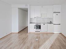 Asunnon avara ja toimiva pohjaratkaisu sopii erinomaisesti sinkulle tai pariskunnalle. Kompaktissa keittiössä on kaikki tarpeellinen, mukaan lukien astianpesukone. Tilava pesuhuone tarjoaa liitännät omalle pyykinpesukoneelle. Kotiin tuo reilusti lisätilaa suuri lasitettu parveke, josta avautuu näkymä suojaisalle sisäpihalle. Seinissä voi olla normaaleja asumisen jälkiä ja halutessasi voit maalata kodin Lumo-värikartan sävyillä. Tarjoamme maalit ja tarvikkeet.