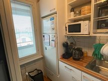 Valoisa kuudennen kerroksen parvekkeellinen huoneisto keittiökomerolla ja tilavallla kylpyhuoneella. Lasitettu koko huoneiston levyinen parveke aamuaurinkoon, kivoilla ”Pariisilais näkymmillä” kattojen yli. Kaikki palvelut lähellä, 9 ratikka menee talon edestä.