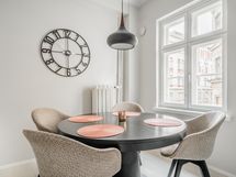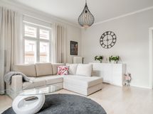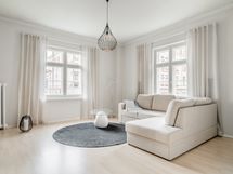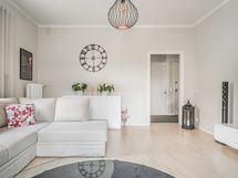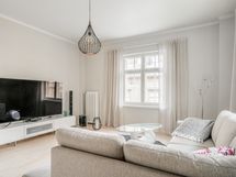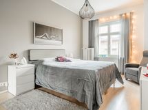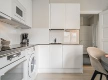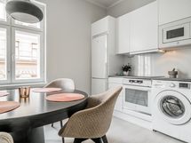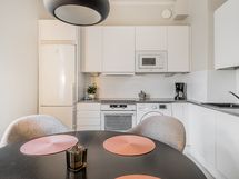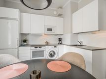 - Vuonna 2020 uusitussa keittiössä kalustepeitteiset jääkaappipakastin ja astianpesukone, induktioliesitaso ja erillisuuni, kalusteisiin sijoitettu mikro, kiinteät valaisimet ja pyykinpesukone. Lattia: Parketti. Seinät: Maalattu