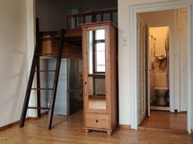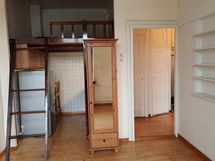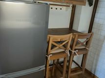 The bright apartment (windows face southwest) on the top floor can be rented partially furnished (furniture in the pictures). The kitchen has brand new appliances: a dishwasher and a fridge-freezer. In addition, the housing association has an optional broadband internet connection, for which a router can be provided. The apartment's bathroom and hallway have been recently repaired. The housing company also has a sauna and laundry room for residents (no washing machine connection in apartment). A sauna shift in the communal sauna, the shared laundry room, a basement storage, and water for one person are included in the rent (a fixed water fee of 24€/month for each additional tenant).