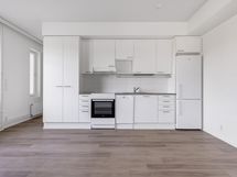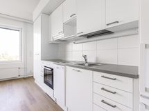 Tämä viihtyisä ja valoisa 8/10 kerroksen koti on moderni ja tilaratkaisultaan erittäin käytännöllinen. Tyylikäs avokeittiö on varustettu mm. astianpesukoneella ja jää-pakastinkaapilla.