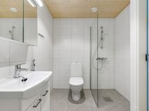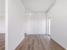 Makuuhuoneeseen on kaksi erillistä oviaukkoa, jolloin kulku sängyn molemmille puolille on vaivatonta. Kylpyhuoneessa on tilavaraus pesukoneelle.