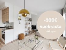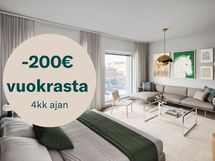 -200€ vuokrasta 4kk ajan! Kampanjaehdot: Kampanjaetu koskee Juli Kalasataman Edisonin asuntoja. Tarjoamme ensimmäisille täydelle neljälle (4) kuukaudelle 200€ kuukausittaisen alennuksen kampanjavuokrana. Alennus otetaan huomioon ensimmäisen täyden kuukauden vuokrasta alkaen. Kampanjaetu koskee asuntoja, joihin solmitaan toistaiseksi voimassa oleva vuokrasopimus 12 kk minimiasumisajalla 1.4.-30.4.2026 välisenä aikana. Ennakkovuokra hyvitetään 3. täyden kuun vuokralaskulla. Kampanjavuokra ja vuokrasopimuksen mukainen vuokra voidaan tarkistaa kohdan sopimusehtojen mukaisesti. Kampanjaetua ei voi hyödyntää aiemmin tehtyihin vuokrasopimuksiin eikä etua voi yhdistää muihin kampanjoihin. Kampanjaetua ei voi hyödyntää sopimusmuutoksissa, asunnonvaihdoissa Juli-kodista toiseen minimiasumisaikana tai jos vuokranmaksu ei ole ajan tasalla. Kampanjaetu ei koske vesimaksua.
