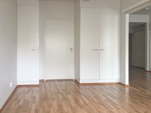 Tämä Lumo-koti tarjoaa toimivan ja tehokkaan pohjaratkaisun ilman hukkaneliöitä. Makuuhuoneessa on käytännöllinen liukuovi ja hyvin kaappitilaa. Olohuoneeseen mahtuu mukavasti kalusteita ja sieltä on kulku lasitetulle parvekkeelle, joka toimii viihtyisänä lisätilana pitkälle vuodenaikaan.