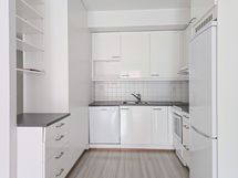 Tämä kaksio tarjoaa toimivan ja tehokkaan pohjaratkaisun ilman hukkaneliöitä. Asunnon vaaleat lattiat, vaaleat keittiön kaapistot ja harmaat tasot luovat raikkaan ja ajattoman kokonaisuuden. Kodin varusteluun kuuluvat astianpesukone ja keraaminen liesi. Kylpyhuoneessa on harmaa laattalattia, valkoiset seinälaatat sekä liitäntä pyykinpesukoneelle.