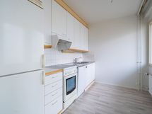Keittiöön kuljetaan kätevän liukuoven kautta ja sieltä on pääsy omalle parvekkeelle. Eteisessä sijaitseva vaatehuone tuo runsaasti säilytystilaa ja alkovi helpottaa sisustamista ja luo selkeän makuutilan.