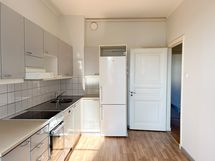 Tilava keittiö mahdollistaa esimerkiksi työtilan tai isomman ruokapöydän sijoittamisen ilman kompromisseja. Kokonaisuus on käytännöllinen ja helposti muunneltava, mikä tekee tästä kodista loistavan valinnan sinulle, joka haluat asua aivan Kallion palveluiden ja hyvien liikenneyhteyksien äärellä.