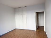 Makuuhuone on hyvän kokoinen, ja leveä ikkuna tuo myös sinne runsaasti valoa. Säilytystilaa löytyy mukavasti makuuhuoneen kaapistoista.