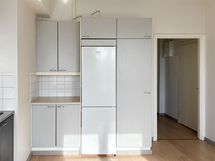 Tilava keittiö mahdollistaa esimerkiksi työtilan tai isomman ruokapöydän sijoittamisen ilman kompromisseja. Kokonaisuus on käytännöllinen ja helposti muunneltava, mikä tekee tästä kodista loistavan valinnan sinulle, joka haluat asua aivan Kallion palveluiden ja hyvien liikenneyhteyksien äärellä.