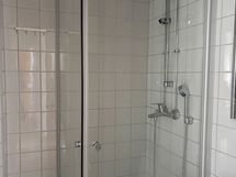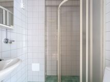 Keittiössä on valkoiset kaapistot puureunuksin, valkoinen välitilan laatta ja valkoinen työtaso, jotka luovat raikkaan ja ajattoman ilmeen. Kylpyhuone on kokonaan laatoitettu ja varustettu suihkukaapilla. Lattiassa on vihertävää laattaa ja seinät ovat valkoiset. Eteistilassa on hyvin kaappeja säilytystä varten. Asunnossa on lisäksi parveke, jossa voi juoda aamukahvin.