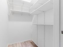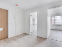 Asunnon pohjaratkaisu on erityisen toimiva ja sopii erinomaisesti myös kämppiksille: olohuone ja makuuhuone ovat lähes saman kokoiset, ja yhteiset tilat sijoittuvat niiden väliin, tuoden arkeen sujuvuutta ja omaa rauhaa molemmille. Eteisen yhteydessä oleva vaatehuone lisää säilytystilaa ja helpottaa arjen järjestystä.