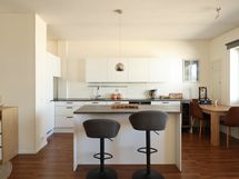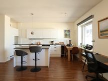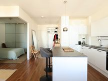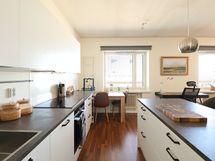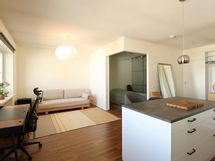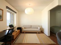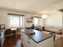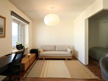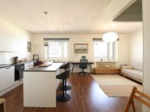 Asunto sijaitsee yhtiön ylimmässä kerroksessa ja on valoisa sekä hyvin suunniteltu. Olohuone ja keittiö muodostavat avaran kokonaisuuden, jossa on tilaa niin oleskeluun kuin työskentelyyn. Keittiö on moderni ja varustettu nykyaikaisilla kodinkoneilla sekä runsaalla säilytystilalla. Varusteluun kuuluu mm. integroitu jääkaappi-pakastin, astianpesukone sekä viinikaappi! Makuutila on erotettu liukuovilla, mikä tuo asuntoon selkeän huonejaon. Kylpyhuone on siisti ja varustettu pesukoneella. Asunto vuokrataan kalustettuna ja soveltuu erinomaisesti esimerkiksi kesätyön, harjoittelun tai määräaikaisen työkomennuksen ajaksi.