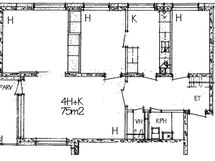 Keittiössä on jää-pakastinkaappi ja nelilevyinen sähköliesi. Tämän talon parvekkeilla ei ole lasituksia, vaikka joissain vanhemmissa kuvissa sellainen voi näkyä.