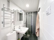 Asunnon pohjaratkaisu mahdollistaa monenlaiset sisustusratkaisut. Asunto on yhtiöjärjestyksen mukaan kaksio, mutta käytännössä huoneet on yhdistetty ja saatu aikaan mukavan avara ratkaisu. Toisen huoneen saat jaettua kätevästi olo- ja makuuhuoneeksi. Toisen huoneen yhteydessä on toimiva avokeittiö, jonka yhteyteen saat hyvin ruokailuryhmän ikkunan ääreen mahtumaan. Asunnon ikkunoista avautuu merinäkymät. Laatoitettu kylpyhuone on remontoitu putkiremontin yhteydessä.