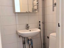 - Pesutilojen varusteet: WC-istuin, suihku, lattialämmitys ja peilikaappi. Pesutilojen kuvaus: Kylpyhuoneessa ei ole pesukoneliitäntää, mutta taloyhtiössä on ilmainen pesutupa.