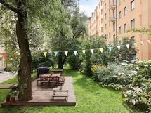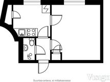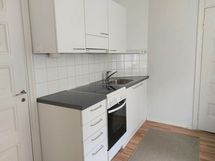 - Keittiön varusteet: Jenkkikaappi, liesituuletin ja liesi. Liesi: Keraaminen liesi. Työtason materiaali: Laminaatti.