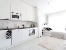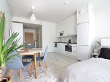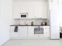 Tässä kodikkaassa asunnossa on kaunis vaalea keittiö nykyaikaisilla kodinkoneilla. mm. astianpesukone ja induktioliesi. Laminaattilattia ja vaaleat seinät helpottavat kodin sisustamista. Isot ikkunat tuovat valoa ja avaruutta. Kylpyhuoneessa on paikka ja liitännät pyykinpesukoneelle. Terassi ja pieni piha tuo asumismukavuutta.