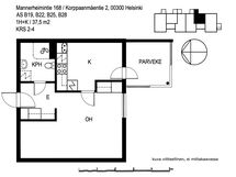 Residents have access to a bike storage room, drying room, and sauna. Parking spaces, both outdoor and in a parking garage, are available for rent through Kytösuontien Pysäköinti Oy, located within and near the housing complex.