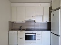 Toukokuun alussa vuokralle vapautuu tilava yksiö, jossa suuri olohuone on helppo kalustaa mieleisekseen ja alkoviin mahtuu leveä sänky. Katettu ja suojaisa parveke jatkaa tilaa entisestään ja toimii lisähuoneena lämpimät kuukaudet. Keittiö on olohuoneen välittömässä läheisyydessä ja sinne mahtuu reilun kokoinen ruokapöytä. Keittiöstä löytyy myös astianpesukone. Ruokapöydälle on hyvin tilaa myös olohuoneen puolella.
