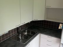 Keittiö juuri remontoitu, mutta kylpyhuone vanhempaa mallia. Pinnoiltaan ok kuntoinen.