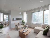 • Parvekkeellinen kaksio, jossa ikkunoita kolmeen ilmansuuntaan • Sijainti on ulkoilijan unelma: ympärillä on vehreä luonto ja lähellä loistavat liikuntamahdollisuudet. • Yhteistiloissa voi tavata naapureita ja viettää aikaa. Käytössä on asukastila, sauna ja pesutupa.