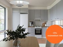 Vuokra on ensimmäisen 3 kk:n ajan 607,18 €, jonka jälkeen vuokra on 821,97 €/kk.