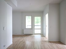 Tässä kodikkaassa kolmiossa on kauniit pintamateriaalit. Asunnossa on vaalea laminaattilattia ja seinät vaalealla maalipinnalla, Modernista ja nykyaikaisesta keittiöstä löytyy mm astianpesukone ja hyvin säilytystilaa. Laatoitetusta kylpyhuoneesta löytyy liitännät pyykinpesukoneelle.