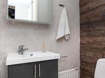 - Kylpyhuone, kylpyhuonekaapisto, suihku, peilikaappi x 2, pesukoneliitäntä, lattialämmitys (pesuhuone), kiinteät valaisimet, sähkösauna, erillinen wc alakerrassa (remontoitu 2022)