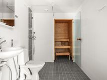 Asunnossa on tilava vaaleasävyinen avokeittiö, joka on varusteltu astianpesukoneella, vakioliedellä sekä jääkaappipakastimella. Asunnossa on kauttaaltaan vaaleat pintamateriaalit sekä upeat isot ikkunat, jotka tuovat kauniisti luonnonvalon asuntoon. Laatoitetussa kylpyhuoneessa on varaus pesutornille sekä sähköinen mukavuuslattialämmitys. Tässä kodissa pääset nauttimaan oman saunan löylyistä sekä ihanasta avoparvekkeesta vehrein näkymin.