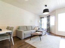 A brand new, high-class fully furnished holiday apartment. The interior has been designed to give you the best holiday experience possible and the private sauna, the modern fireplace, the balcony with a view to the nearby lake and the parquet floors add a touch of luxury. The apartment is located in the incoming area Rauha, which is a peaceful area close to nature and provides the resident many activities and services.