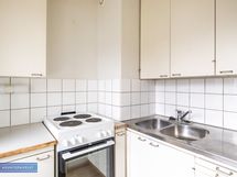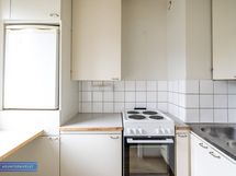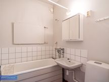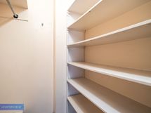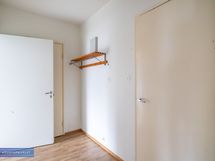 Olohuone varsin avara ja valoisa. Eteisestä käynti vaatehuoneeseen, jossa säilytystilaa löytyy hyvin. Kylpyhuoneessa liitäntä pyykinpesukoneelle.