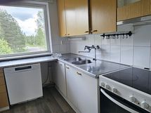 Paljon kaappitilaa, Tilaa isolle ruokapöydälle, Paljon työskentelytilaa, Suuri tiskipöytä, Sähköliesi, Pesukoneliitos, Jää-pakastinkaappi