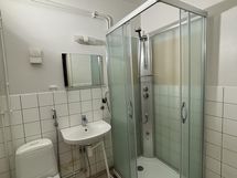Kylpyhuone, suihkukaappi, pesukoneliitäntä.