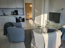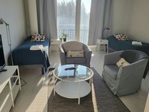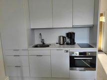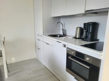 A cozy and fully furnished one-room apartment in Järvenpää. The apartment has been completed in 2015 and it is in good condition. The compact kitchen is equipped with a dishwasher and tools for cooking, and there is a washing machine in the bathroom. The furniture is stylish and the colors of the interior are peaceful. There is a lot of storage in the hallway’s closets. Linen, towels and an Internet connection are included in the price. The apartment is located in a peaceful area, 600 meters away from the Saunakallio train station. The nearest grocery store is within less than 400 meters of the apartment. The city center of Järvenpää is less than 3 kilometers (1,7 miles) away from the apartment with its services, such as several bigger grocery stores, shops and restaurants. Besides, there is for example a school and an ice stadium nearby. The Lahti motorway is 5 kilometers away.