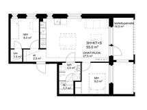 Valoisa kolmio Pajalasta vuonna 2021 valmistuneessa yhtiössä. Modernit vaaleat kalusteratkaisut lisäävät asumisviihtyvyyttä ja tekevät asunnon sisustamisesta helpon. Asunto on neliöitään suuremman tuntuinen. Koko asunnon leveä lasitettu parveke lisää asumismukavuutta. Vaatehuone toisen makuhuoneen yhteydessä.