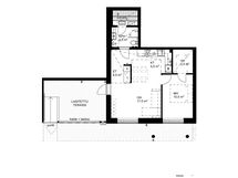 Tässä uudiskohteen uniikkiasunnossa on tilava ja nykyaikaisesti varusteltu kulma-avokeittiö, jonka yhteydessä on paikka myös ruokapöydälle. Avara olohuone mahdollistaa erilaiset sisustusratkaisut moneen makuun. Makuuhuoneeseen sopii hyvin parisänky ja säilytysratkaisuna on iso vaatehuone, jonka ansiosta kaapistot eivät vie lattiapinta-alaa. Laatoitetussa kylpyhuoneessa on kääntyvä lasinen suihkuseinä, tilavaraus pesutornille sekä miellyttävä sähkötoiminen mukavuuslattialämmitys. Kokonaisuuden kruunaavat oma sauna, jonka löylyistä pääsee nauttimaan aina halutessaan sekä suuri lasitettu terassi, jonka kautta huoneistoon on oma yksityinen sisäänkäynti.