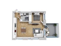 Tässä valoisassa kulmahuoneistossa nykyaikaisesti varusteltu avokeittiö muodostaa avaran yhtenäisen tilan olohuoneen kanssa. Keittiössä on vaaleat materiaalit ja laadukkaat kodinkoneet: induktioliesi, kalusteuuni, jääkaappipakastin sekä astianpesukone. Tyylikkäässä laatoitetussa kylpyhuoneessa on peilikaappi, lasinen kääntyvä suihkuseinä sekä varaus pesutornille. Kylpyhuoneen lattiaan on myös asennettu miellyttävä sähkötoiminen mukavuuslattialämmitys. Makuuhuoneeseen sopii parisänky ja sieltä löytyy myös mukavasti säilytystilaa. Kodin kruunaa tilava lasitettu parveke!