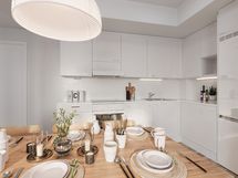 Tämän tilavan kodin keittiössä on hyvin säilytys- ja työskentelytilaa ja laadukas varustelutaso, johon kuuluu mm. induktioliesitaso, erillisuuni ja astianpesukone. Olohuoneessa on kauttaaltaan vaaleat pintamateriaalit sekä upeat isot ikkunat, jotka tuovat kauniisti luonnonvalon asuntoon. Päämakuuhuoneessa on hyvin tilaa parisängylle ja runsaat säilytysratkaisut. Kahteen pienempään makuuhuoneeseen mahtuu kätevästi sänky ja työpöytä. Laatoitetussa kylpyhuoneessa on kääntyvä lasinen suihkuseinä, tilavaraus pesutornille sekä miellyttävä sähkötoiminen mukavuuslattialämmitys. Kokonaisuuden kruunaa iso lasitettu eteläparveke!