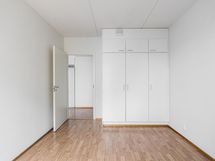 Makuuhuoneessa on reilusti tilaa parisängylle ja säilytyksen hoitavat kaapistot. Eteisessä on myös runsaasti kaappitilaa.