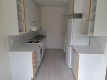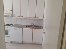 Tilaa isolle ruokapöydälle, Paljon kaappitilaa, Astianpesukone, Sähköliesi, Jää-pakastinkaappi