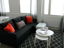Tämä kalustettu ja täysin varusteltu kaksio on moderni ja viihtyisä, mutta samalla myös lämmin ja kodikas. Asunto sijaitsee aivan torin vieressä Joensuun ydinkeskustassa ja kaupungin vilskettä saakin seurata ylimmän kerroksen näkymin. Asunnolla saat käyttöösi täysin varustellun keittiön ja pyykinpesukoneen. Asunnosta löytyy myös liinavaatteet ja pyyhkeet, joten sinun ei tarvitse tuoda mukanasi kun omat henkilökohtaiset tavarasi.