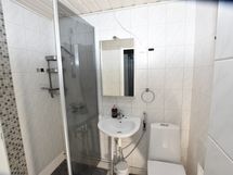 Kylpyhuone on tyylikkäästi laatoitettu, ja sen vieressä sijaitsee kätevä erillinen pyykkikomero, jossa on liitännät pesukoneelle. Myös lemmikeistä voidaan neuvotella tapauskohtaisesti.
