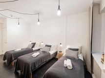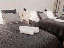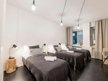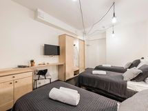 The rooms - designed by Studio Puisto, one of the world’s best emerging design studios - offer an oasis of comfort and relaxation right in the city center. A Standard Room + bathroom is an excellent choice for 2-3 persons. The room, designed with a modern compact solution, has high-quality single beds, ensuring a good night’s sleep. This room has private bathroom, which adds comfort for your staying. And of course the rooms have air conditioning. The basic equipment includes a flat screen TV, refrigerator and utensils. You can cook your own food in cozy common kitchen areas, available on all floors. The hostel has clean common toilets, showers, sauna and laundry rooms. The price includes WiFi, linen, towels and end cleaning. The new code lock system makes checking in easy.