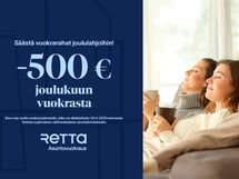 Tammikuu 0€! Etu on voimassa uusille asiakkaille 31.12.2025 mennessä tehtyihin vuokrasopimuksiin, joissa minimiasumisaika 7kk. Rent benefit (rent in January 0€). Available for new customers who sign contracts by the end of December with minimum contract period of 7 months.