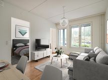 Kiinteistöllä on lisäksi Very Good -tason BREEAM-sertifikaatti eli ympäristöluokitus. Voit lukea lisää BREEAM-sertifioinneista ja Green homes -toiminnasta Mutkatonkoti.fi-sivuston Vastuullisuus-osiosta. Saunallinen kaksio Keljosta! Tämän modernin kodin ikkunat ja lasitettu parveke ovat länteen. Kodin keittiö ja olohuone muodostavat avoimen kokonaisuuden, joten kalusteet löytävät varmasti oman paikkansa. Keittotilan varustukseen kuuluu, keraaminen liesi, liesikupu, astianpesukone sekä jääkaappipakastin. Myös mikrolle on tilavaraus. Suurin osa neliöistä on käytetty oleskelutiloihin ja makuuhuone on rauhoitettu nukkumiselle. Lisäksi makuuhuoneiden ovettomuus helpottaa tilaan kulkua. Kodin kylpyhuoneen sisustus jatkaa raikasta vaalea linjaa valkoisine kalusteineen tummanharmaan lattian tuodessa kontrastia. Lattiassa on sähköinen mukavuuslämmitys. Pyykinpesukoneelle ja kuivausrummulle on varattu oma paikkansa. Saunan lämminsävyiset kuusilauteet kutsuvat saunomaan. Makuuhuoneesta löytyy lisäksi vaatehuone, jonne mahtuu niin arki- kuin kausivaatteet ja harrastusvälineet.