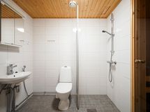 Peilikaappi. KH: Lattialämmitys vesikiertoinen. Pesukoneliitäntä.