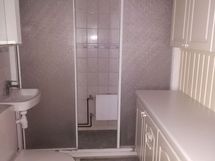 - Varustus: suihkuseinä, pesukoneliitäntä, wc-istuin, suihku, peilikaappi.