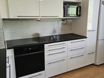 Asunnossa on lähes uutta vastaava valkoinen keittiö, muutaman vuoden vanhat jääkaappipakastin, erillinen uuni ja induktioliesitaso sekä astianpesukone. Kunnollisen kokoinen keittiö, paljon kaappi- ja työtaso tilaa.