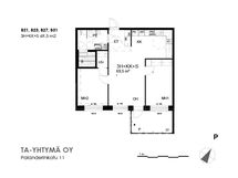 Asunnossa on kaksi reilunkokoista makuuhuonetta sekä tilava olohuone, johon on helppo sisustaa sekä oleskelu- että ruokailuryhmä. Keittokomero sijoittuu luontevasti ruokailutilan yhteyteen, mikä tekee ruoanlaitosta ja arjen askareista mutkatonta.
