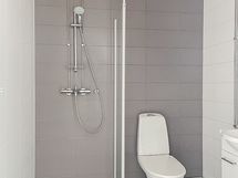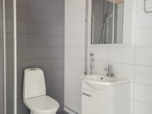- Varustus: suihkuseinä, pesukoneliitäntä, lattialämmitys, wc-istuin, suihku, peilikaappi.